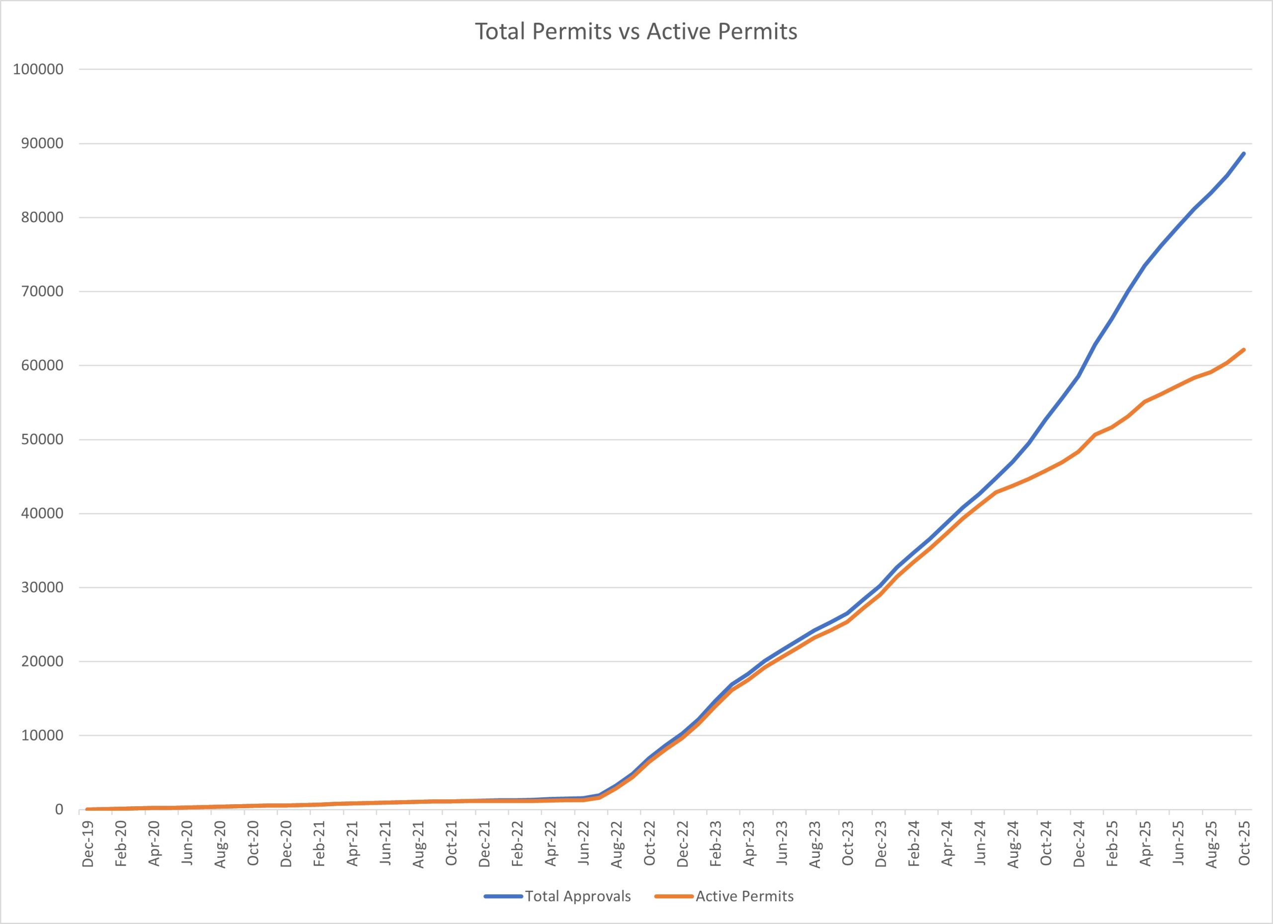 - All permits approved since the earliest date reported in the state’s data is the oft-reported number, 88,656.